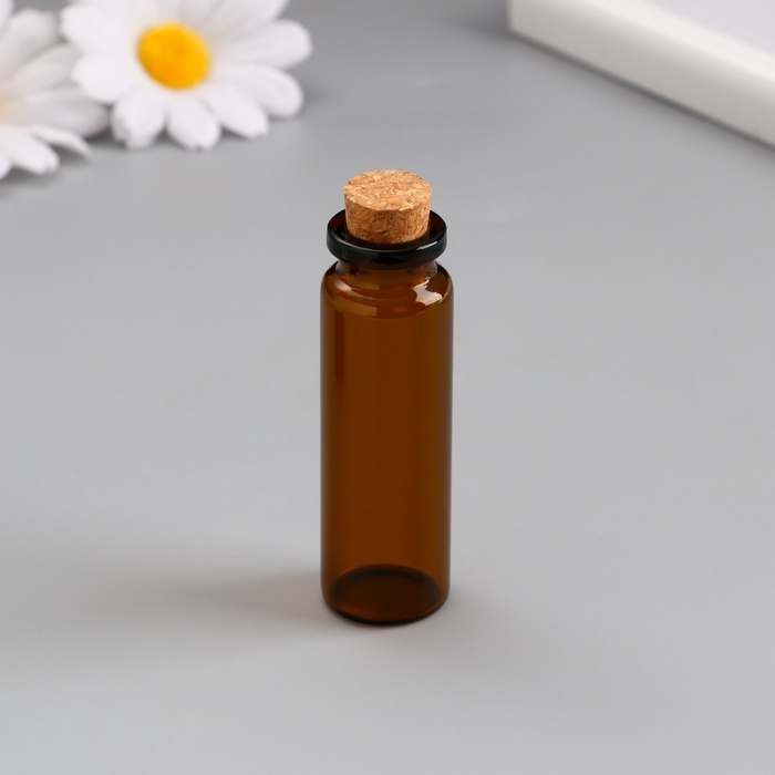 Маленькие стеклянные баночки «Бутылочка с пробкой», набор 5 шт. для творчества и декора, чайный, 15 мл, 7×2.2×2.2 см