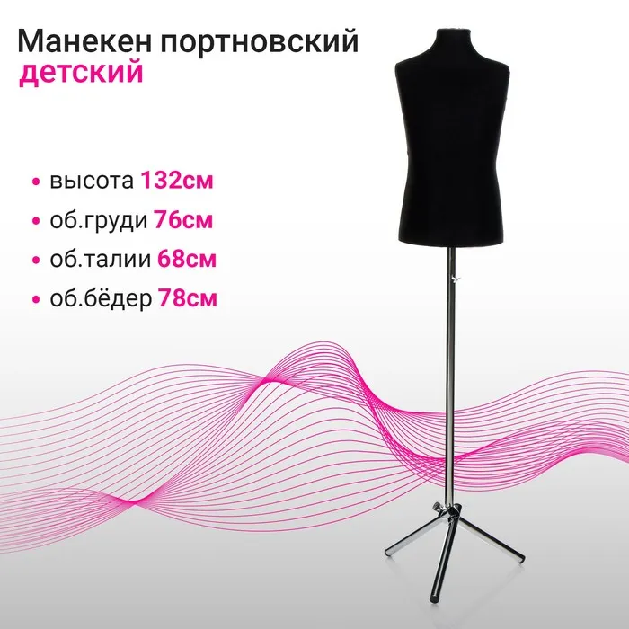 Манекен портновский на хромированной стойке «Детский» 76×68×78 см, длина 55, цвет чёрный — Характеристики
