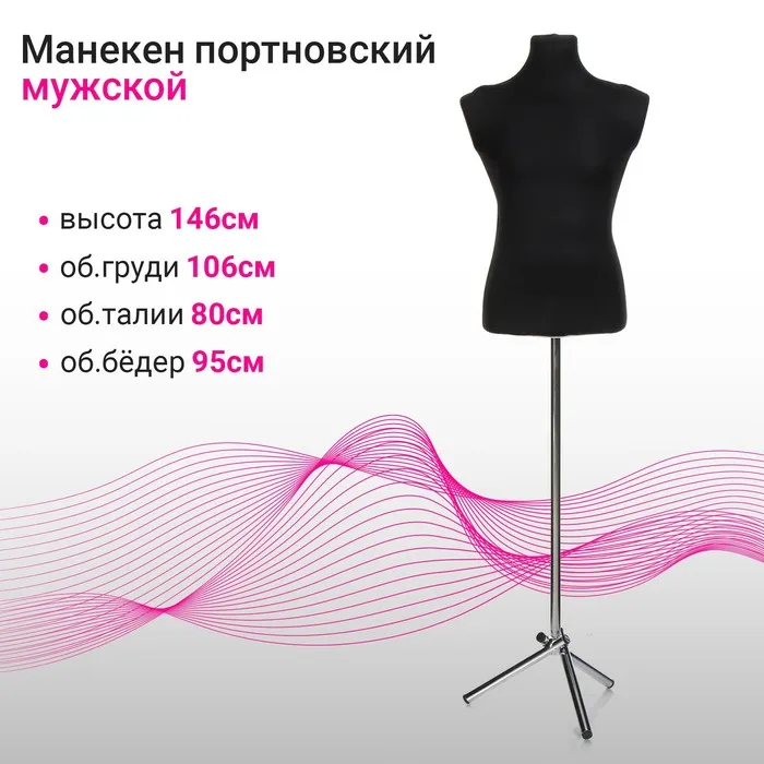 Манекен портновский на хромированной стойке «Мужской» 44-48, 106×80×95 см, чёрный — Характеристики