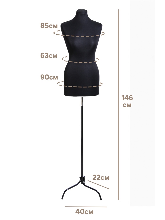 Манекен портновский на стойке «Женский» 46-48, 85×63×90 см, чёрный — Характеристики
