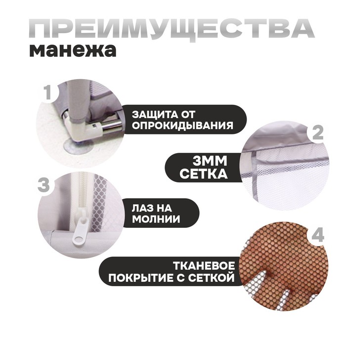 Манеж детский «Серый», 150х150х68 см — Характеристики
