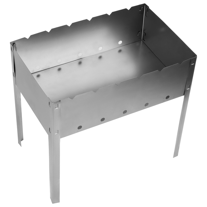 Мангал разборный «Эконом» — облегчённая мобильная конструкция для быстрой сборки. Используется для приготовления мяса, рыбы, овощей на открытом огне или древесных углях. Выполнен из стали, на боковых стенках имеются отверстия для поддува.