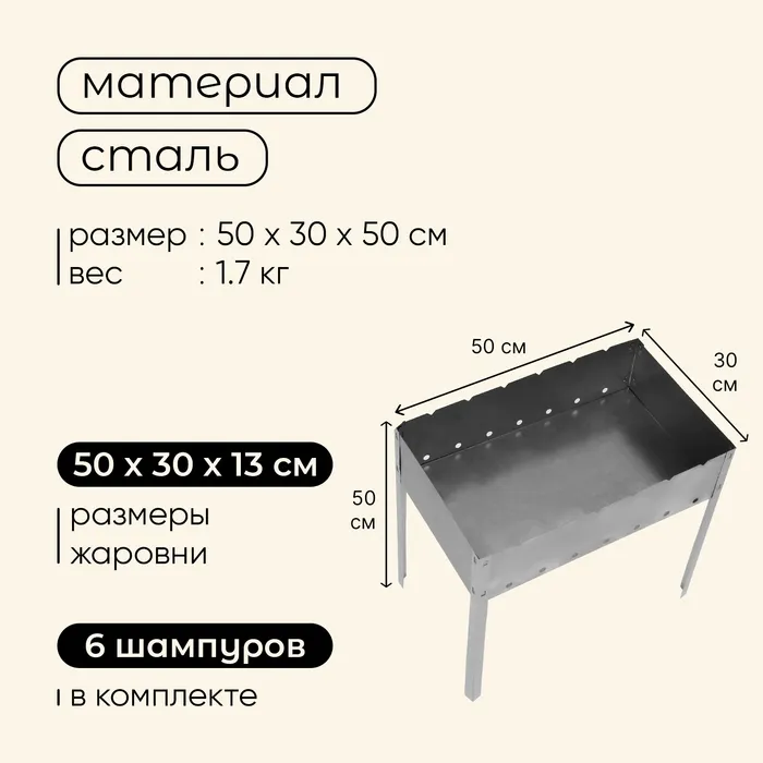 Мангал maclay "Стандарт", 6 шампуров, 50×30×50 см, металлический, разборный — Характеристики
