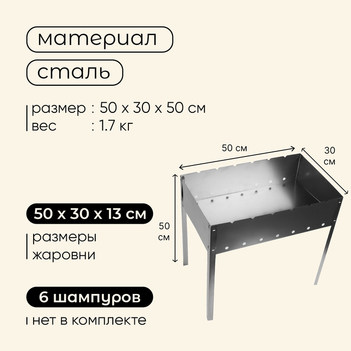 Мангал maclay "Стандарт", без шампуров, 50×30×50 см, металлический, разборный — Характеристики