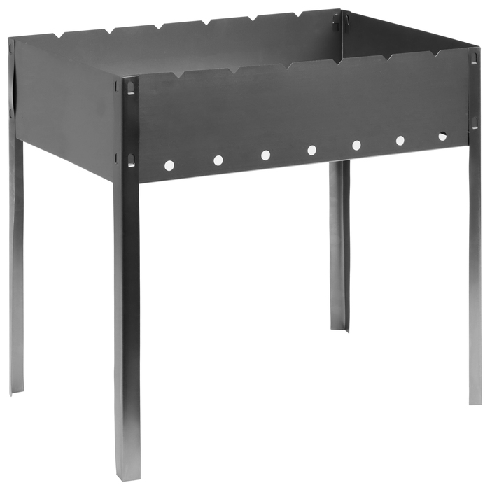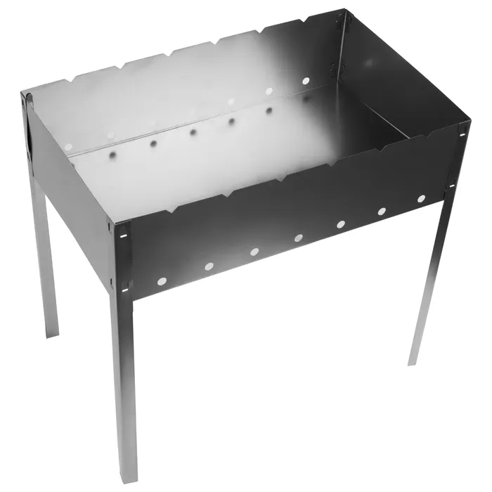 Мангал разборный «Стандарт» — облегчённая мобильная конструкция для быстрой сборки. Используется для приготовления мяса, рыбы, овощей на открытом огне или древесных углях. Изготовлен из стали, на боковых стенках имеются отверстия для поддува.