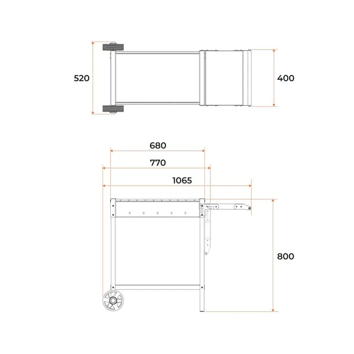 Мангал «MAH 202», 106.5×52×79.7 см, 2 мм, колёса, боковая полка — Характеристики