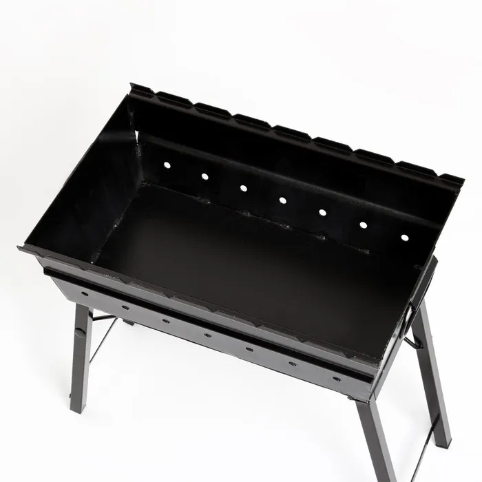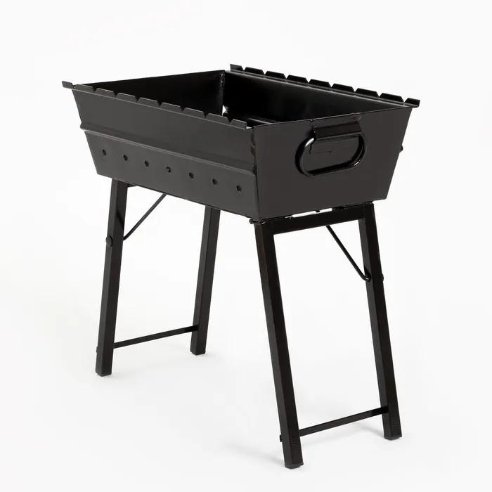 Прекрасно подходит для готовки на углях и открытом огне. Благодаря небольшим размерам и складным ножкам быстро устанавливается и разбирается. Не займет много места в багажнике при выезде на природу.