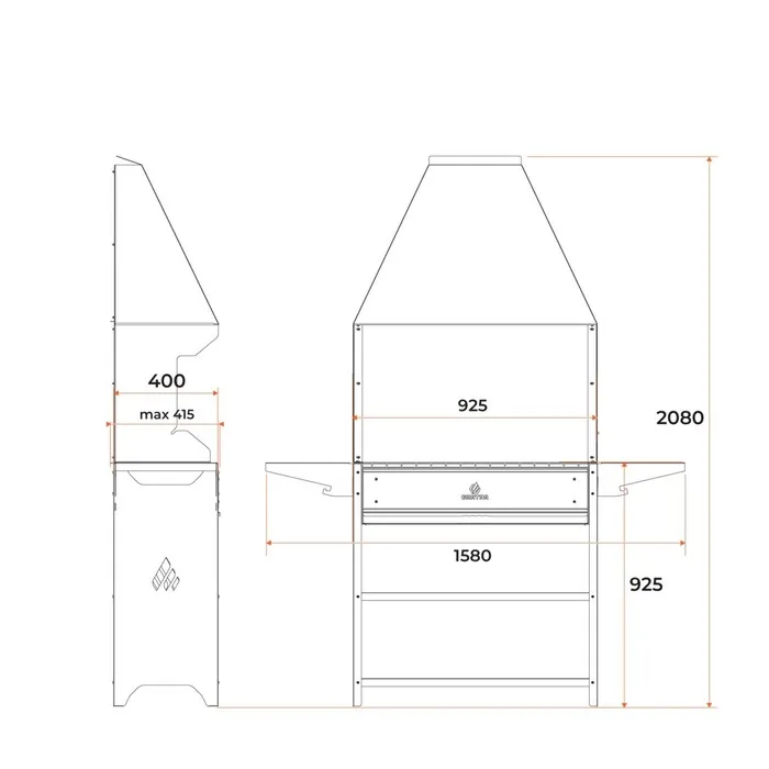 Мангал Professional Optima Zont POZ 3000, 3 мм, 158.2×41.2×207.9 см — Характеристики