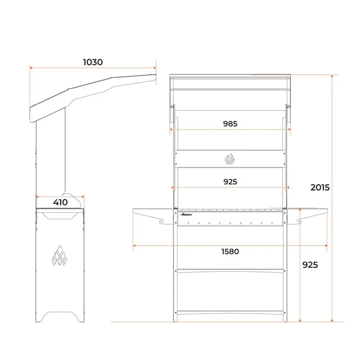Мангал Professional Standart Roof PSR3000, 158.2×102.6×201 см, 3 мм, полки, с крышей — Характеристики