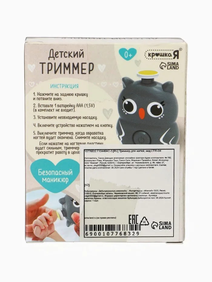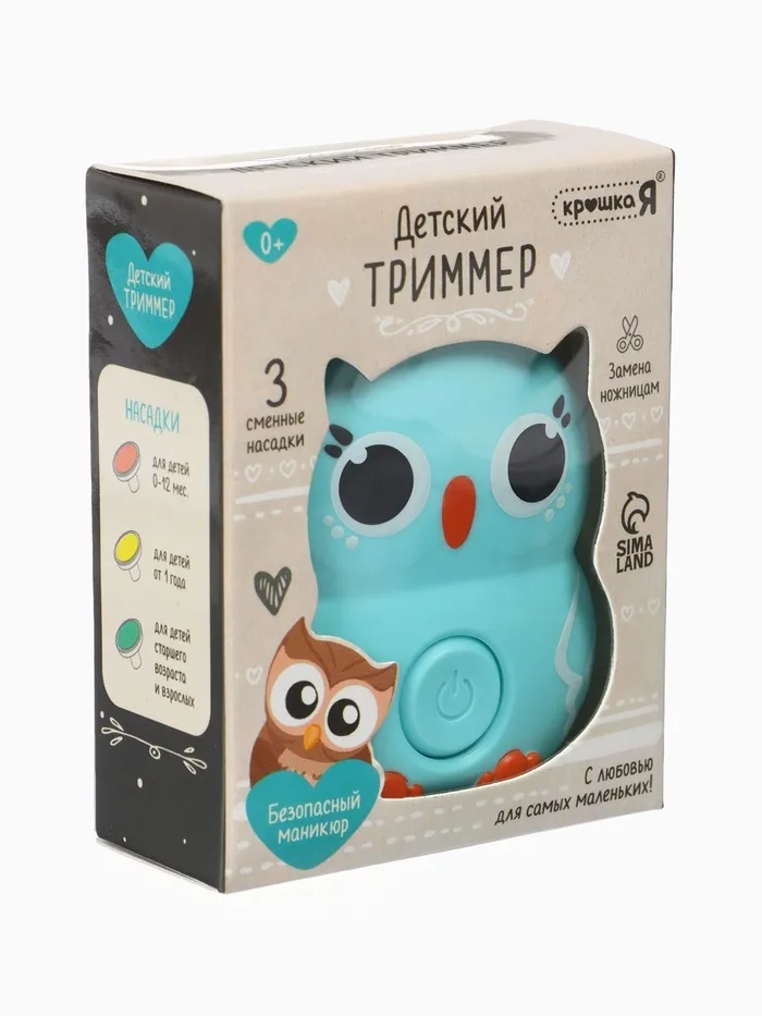 Маникюрный набор «Детский триммер для ногтей. Совушка», 3 сменнные насадки, от 0мес. — Характеристики