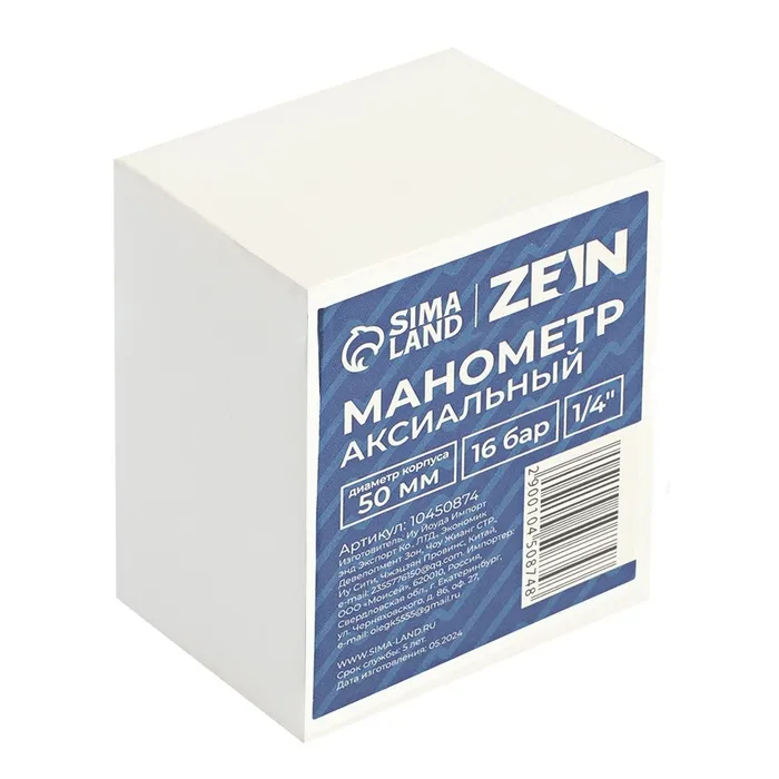 Манометр ZEIN с аксиальным расположением и диаметром корпуса 50 мм предназначен для измерения давления в различных системах. Он оснащен резьбой 1/4", что позволяет легко подключать его к инструментам и оборудованию.