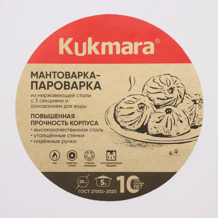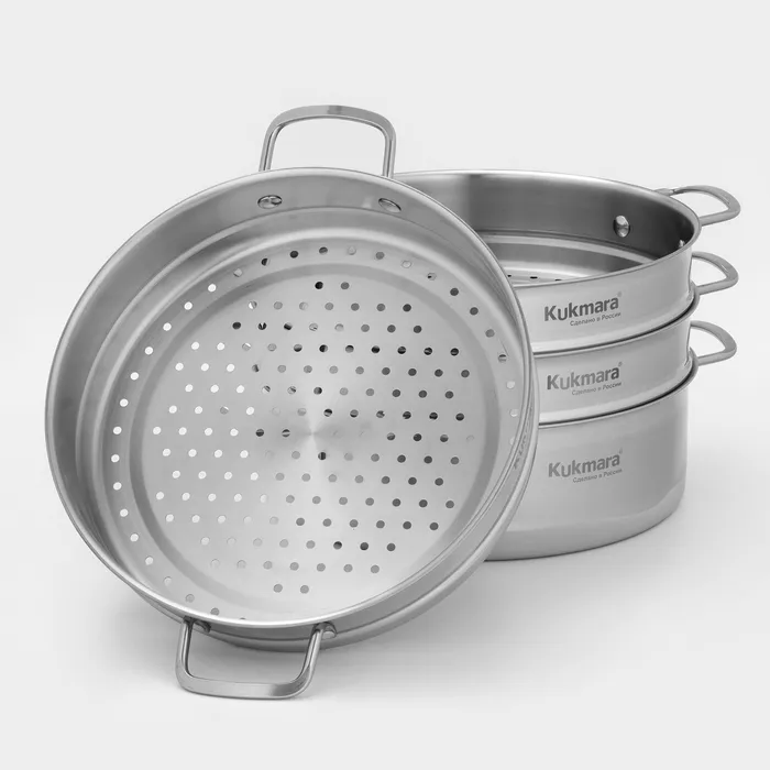 Благодаря многофункциональности мантоварки-пароварки от Kukmara, в меню вашей семьи всегда будет широкий выбор идеально приготовленных блюд. Она станет отличным помощником для любителей национальной кухни, для сторонников здорового питания, а также для практичных покупателей, ценящих в посуде универсальность, высокое качество и долговечность.