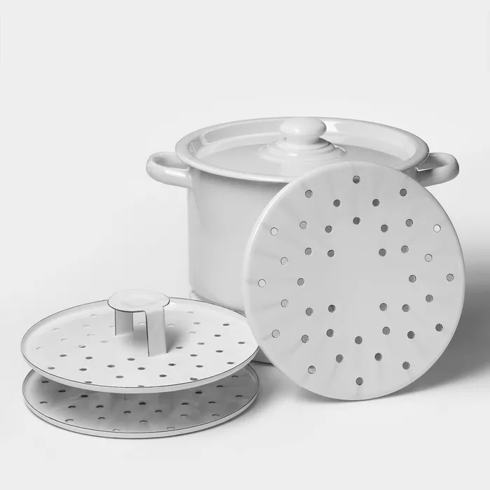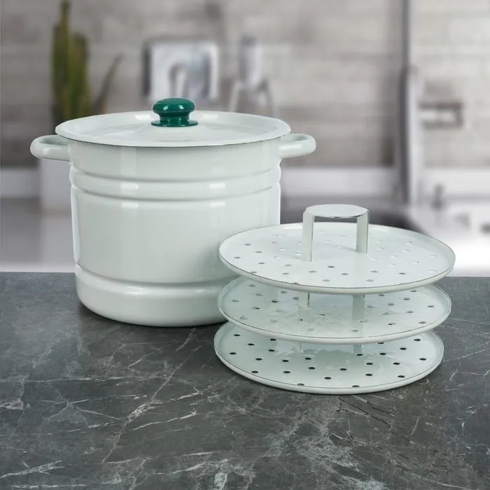 Мантоварка - позница эмалированная, 9 л, 3 вставки, цилиндрическая, цвет белый — Характеристики