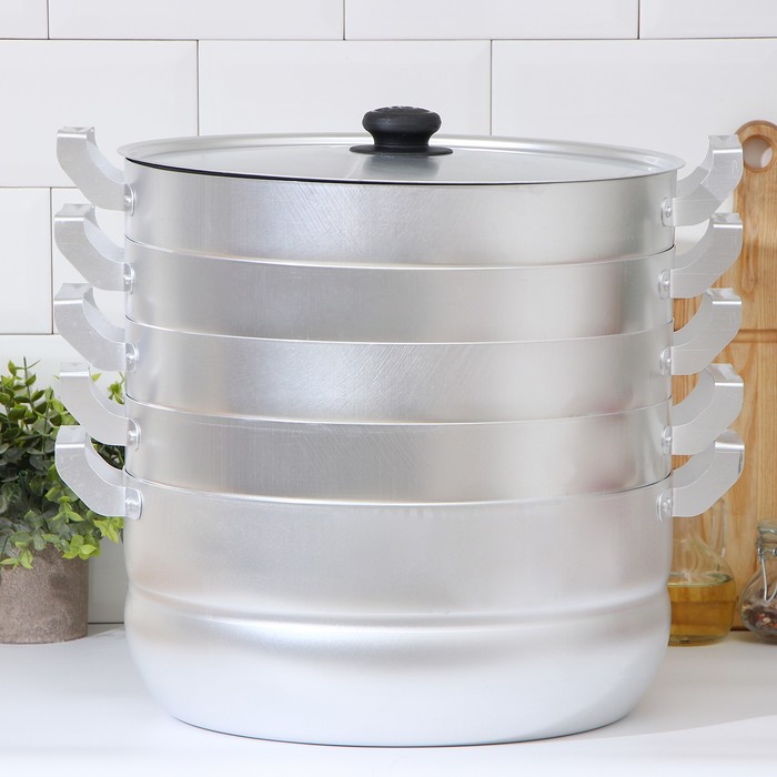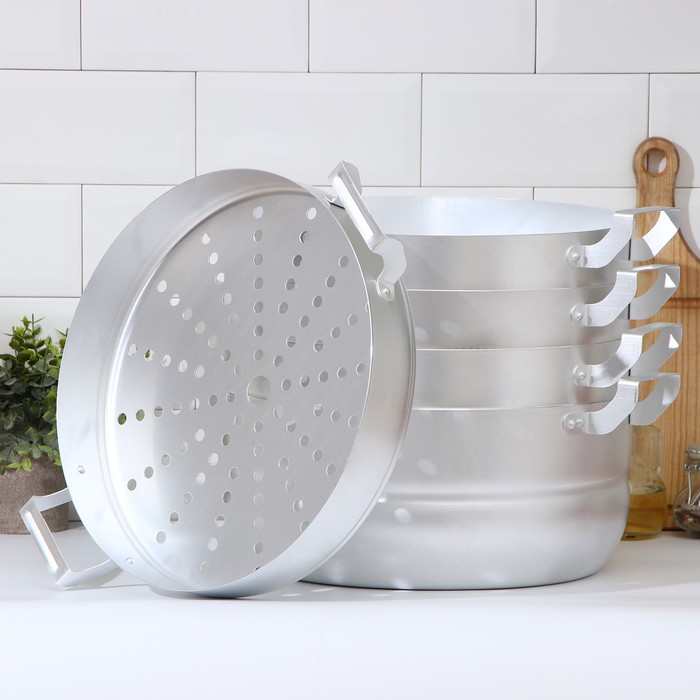 Манты-казан алюминиевый, 13 л, с 4 сетками, d=30 см, высота секции 5 см, металлическая крышка