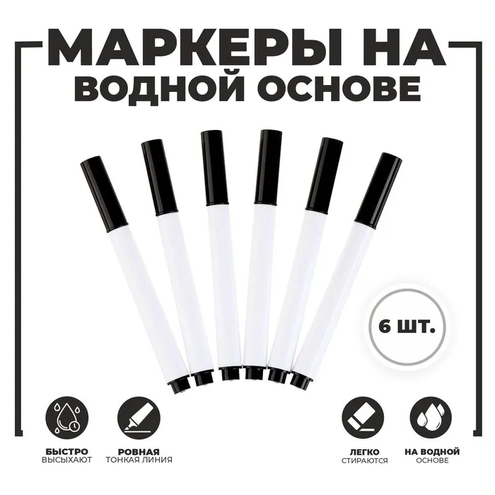 Находитесь в поиске маркеров для учебных или деловых презентаций на белой эмалевой доске? Маркеры цветные 6 цветов, водная основа, 6 шт. – подходящий выбор для самых успешных презентаций. Этот вариант включает в себя все достоинства обычных маркеров для досок – насыщенный цвет, ровную яркую линию, светоустойчивость. Однако водная основа имеет свои особые преимущества.