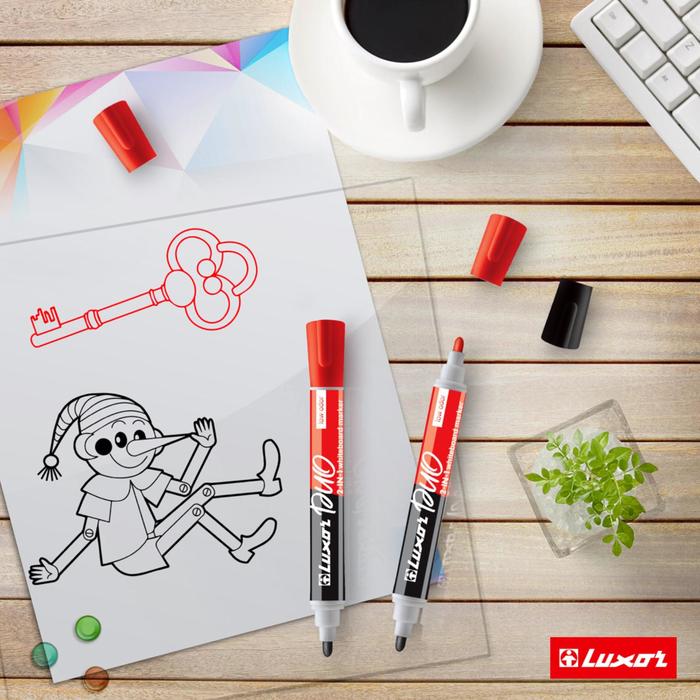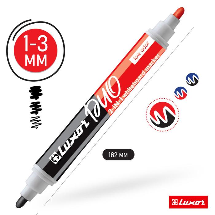 Маркер для белых досок Luxor Duorite, 1-3 мм, двусторонний, пулевидный, чёрный/красный — Характеристики