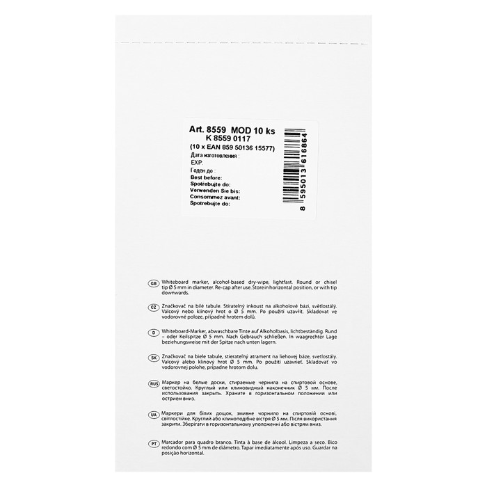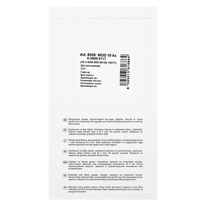 Centropen 8559 — это маркер для белых сухостираемых досок и непористых поверхностей.