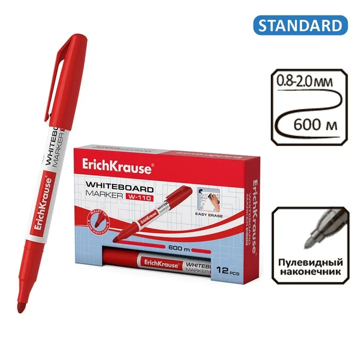 Маркер для доски ErichKrause W-110, 2,0 мм, круглый, красный — Характеристики