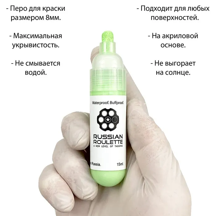 Маркер для граффити Russian Roulette, 8 mm, 15 мл, цвет green paint — Характеристики