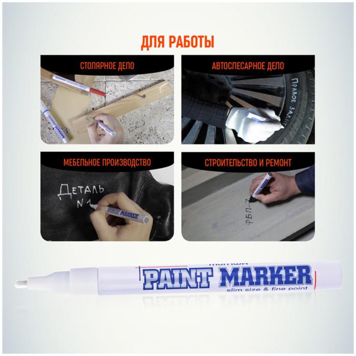 Paint Marker подходит для реставрации дефектов на бытовой технике, обуви, кузове автомобиля, а также надписей на каменных плитах. Маркер-краска MunHwa имеет широкое применения в дизайне, декорировании и оформлении. Корпус маркера изготовлен из прочного алюминия. Клапанный механизм пишущего узла исключает растекание и разбрызгивание краски, преждевременное пересыхание маркера, срок годности 5 лет.