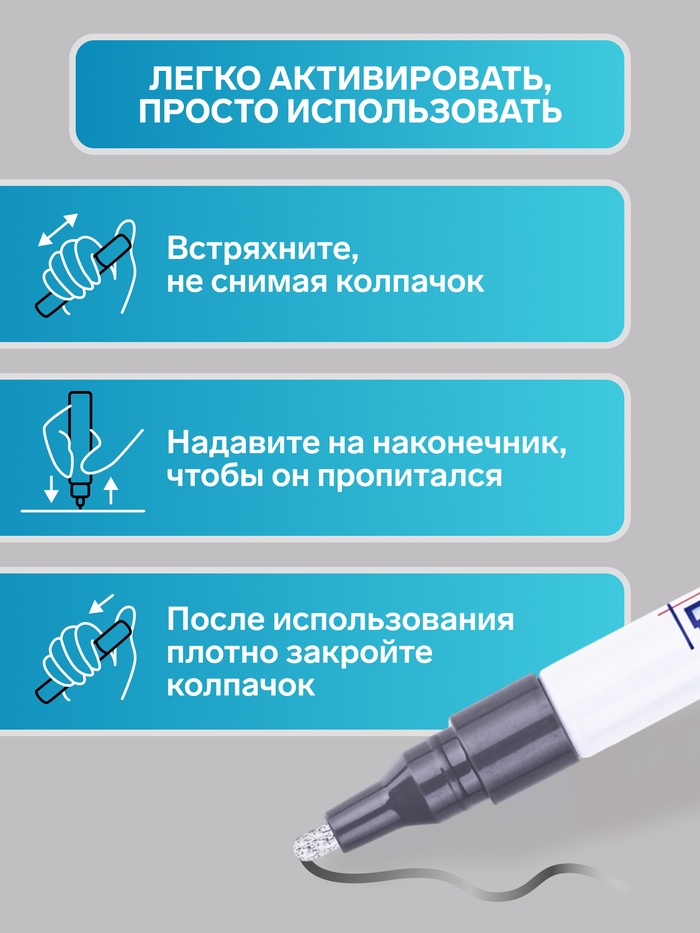 Paint Marker подходит для реставрации дефектов на бытовой технике, обуви, кузове автомобиля, а также надписей на каменных плитах. Маркер-краска MunHwa имеет широкое применения в дизайне, декорировании и оформлении. Корпус маркера изготовлен из прочного алюминия. Клапанный механизм пишущего узла исключает растекание и разбрызгивание краски, преждевременное пересыхание маркера, срок годности 5 лет.