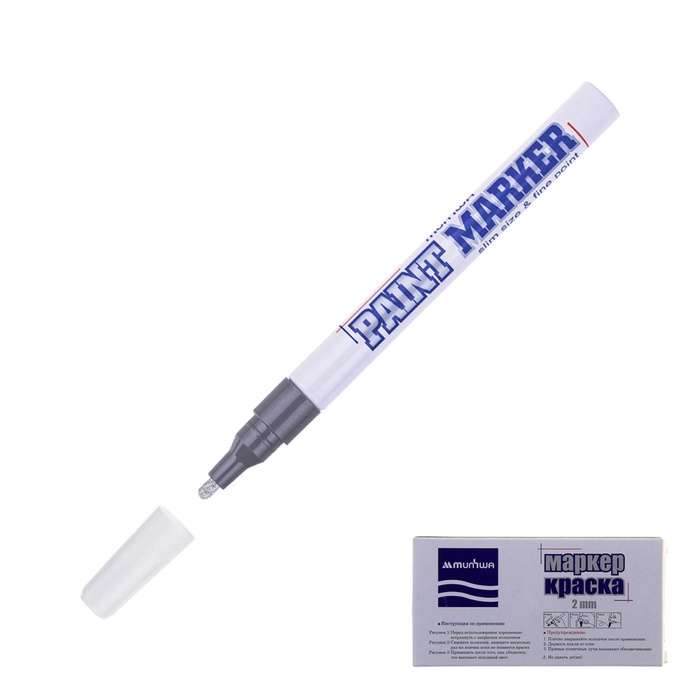 Маркер-краска (лаковый маркер) MunHwa - профессиональный лаковый маркер на нитрооснове. Маркер-краска MunHwa пишет на всех типах поверхностей: металл, дерево, резина, бетон, стекло, кожа. Диаметр пишущего узла - 2 мм.