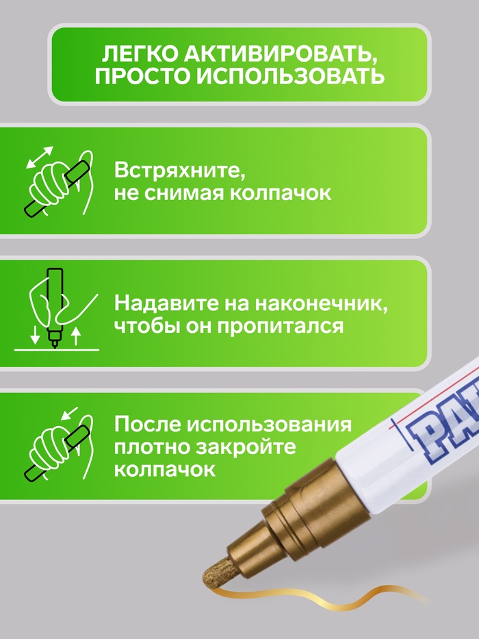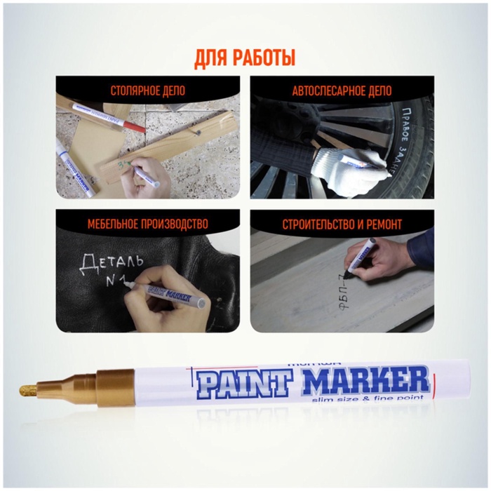 Paint Marker подходит для реставрации дефектов на бытовой технике, обуви, кузове автомобиля, а также надписей на каменных плитах. Маркер-краска MunHwa имеет широкое применения в дизайне, декорировании и оформлении. Корпус маркера изготовлен из прочного алюминия. Клапанный механизм пишущего узла исключает растекание и разбрызгивание краски, преждевременное пересыхание маркера, срок годности 5 лет.