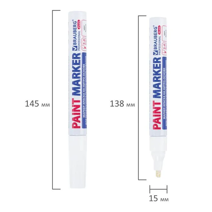 Маркер-краска лаковый BRAUBERG предназначен для маркировки различных материалов в промышленных условиях: бетона, дерева, стекла, металла, резины, пластика. Заправлен краской с усиленной формулой на нитро-основе РМ-14. СПОСОБ ПРИМЕНЕНИЯ:1. Перед использованием хорошо встряхнуть с закрытым колпачком.2. Снять колпачок, надавить на наконечник, дождаться, когда краска полностью пропитает его.3. После использования плотно закрыть колпачок.Чернила с лаковым эффектом производства компании MULTICHEM являются экологичными и безопасными для окружающей среды. Благодаря усиленной формуле идеально подходят для нанесения долговечной маркировки на любых поверхностях, включая влажные. Отличаются термо- и водостойкостью, устойчивы к выцветанию. Пишет по сухим, жирным, грязным, ржавым и влажным поверхностям. Ширина линии письма составляет 2-4 мм. Прочный круглый наконечник выполнен из пористого акрила. Алюминиевый корпус.