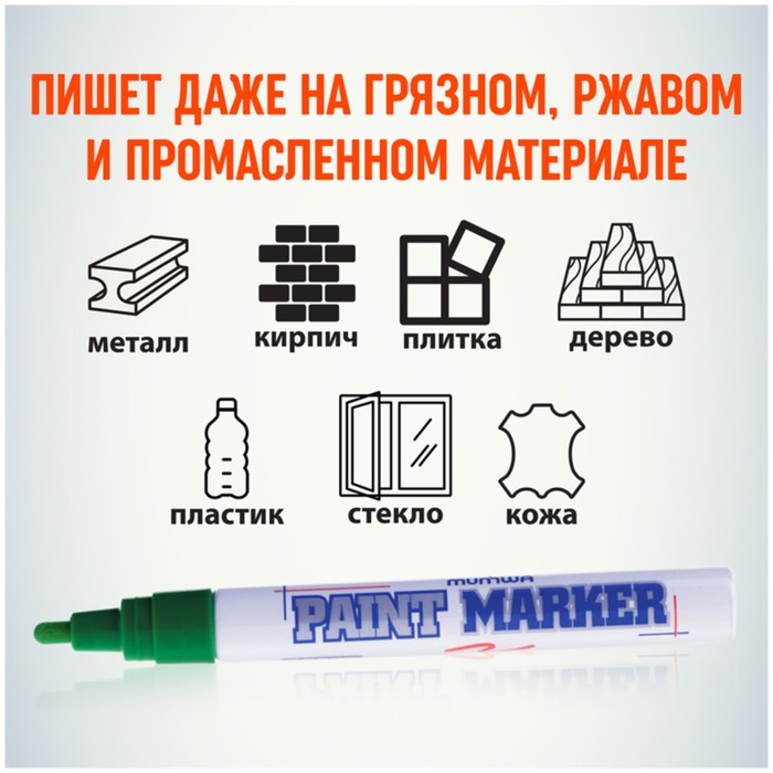 Маркер-краска морозоустойчива, не выгорает на солнце, может писать по горячей (до 130 градусов) или загрязнённой, в том числе и маслами, поверхности.