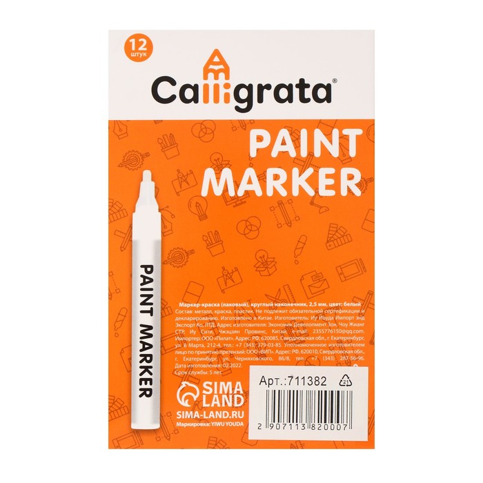 Маркер-краска, лаковый наконечник, пулевидный 4 мм, ширина линии 2.5 мм, серебристая, цена за 1 штуку — Характеристики