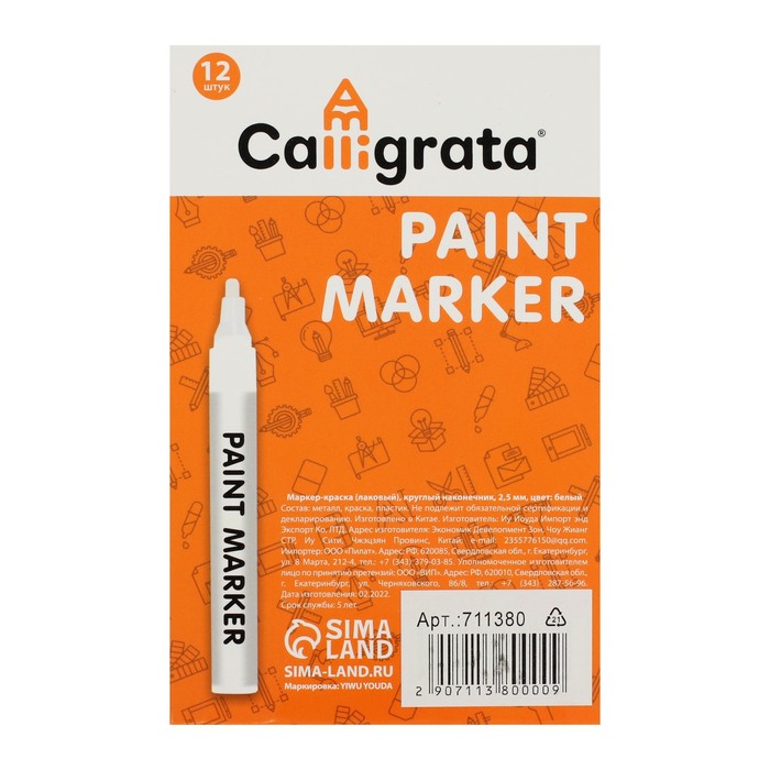 Маркер-краска, лаковый наконечник, пулевидный 4 мм, ширина линии 2.5 мм, зеленая, цена за 1 штуку — Характеристики