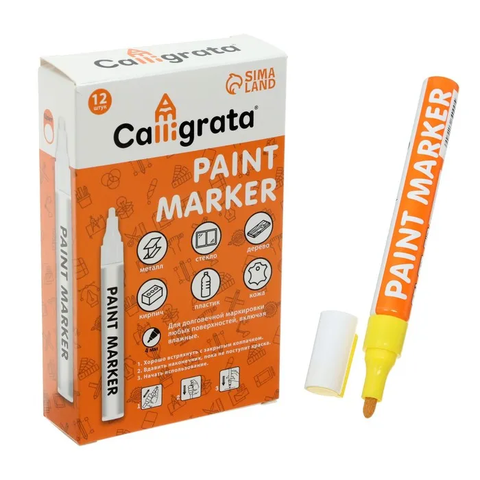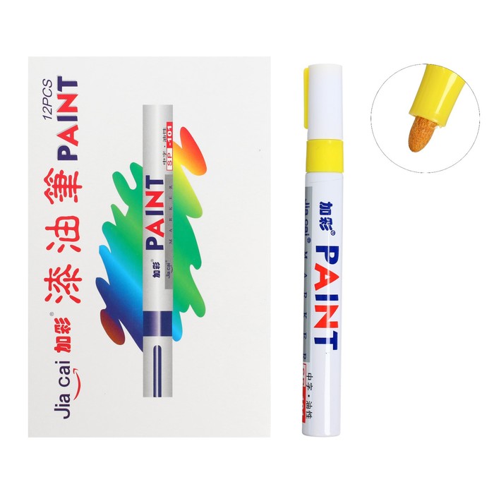 Маркер-краска, лаковый наконечник, пулевидный 4 мм, ширина линии 2.5 мм, желтая, цена за 1 штуку — Характеристики
