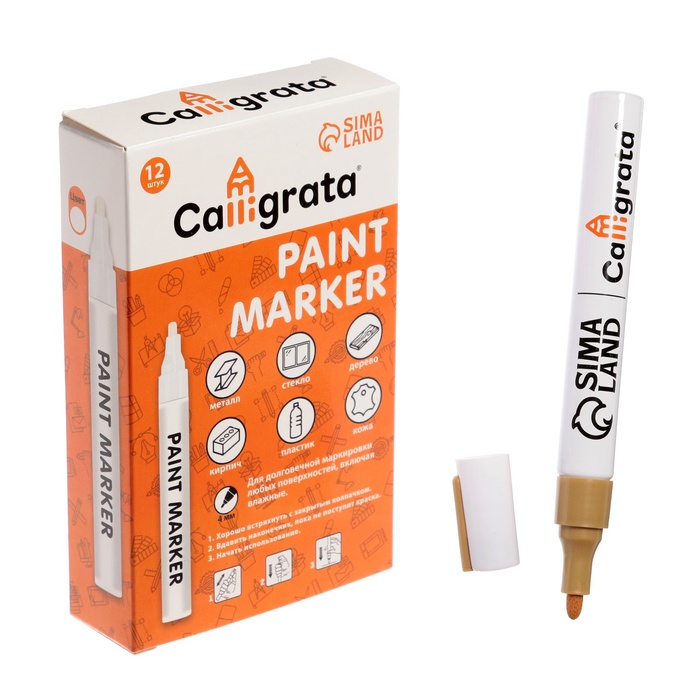 Маркер-краска, лаковый наконечник, пулевидный 4 мм, ширина линии 2.5 мм, золотая, цена за 1 штуку — Характеристики