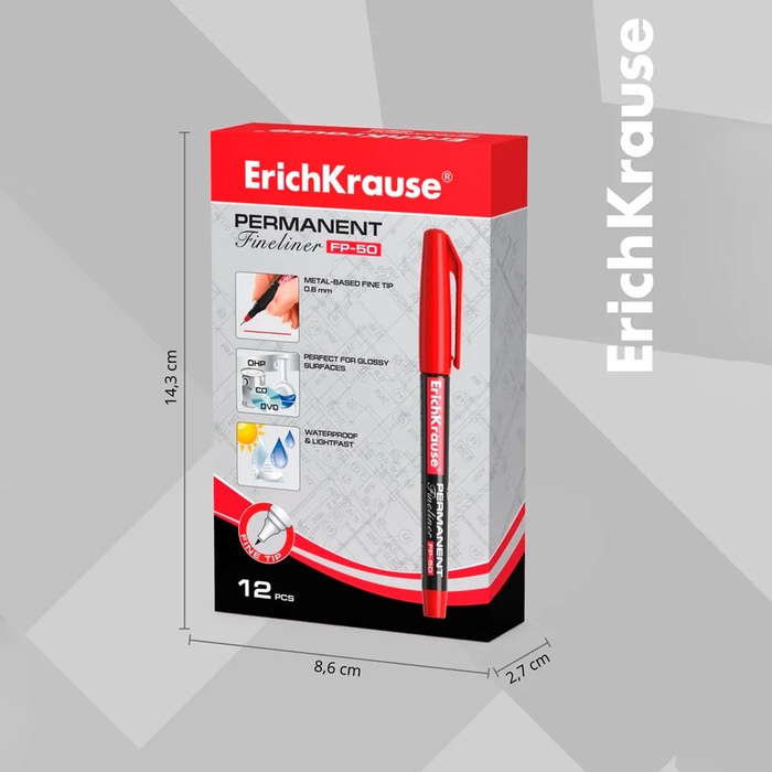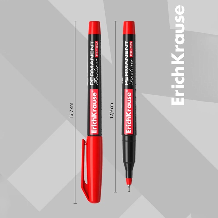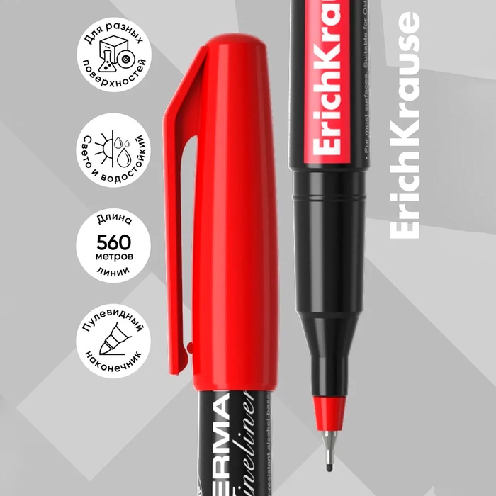 Маркер - лайнер перманентный ErichKrause FP-50, 0.6 мм, чернила на спиртовой основе светостойкие, водостойкие. Для письма на любой поверхности, красный — Характеристики
