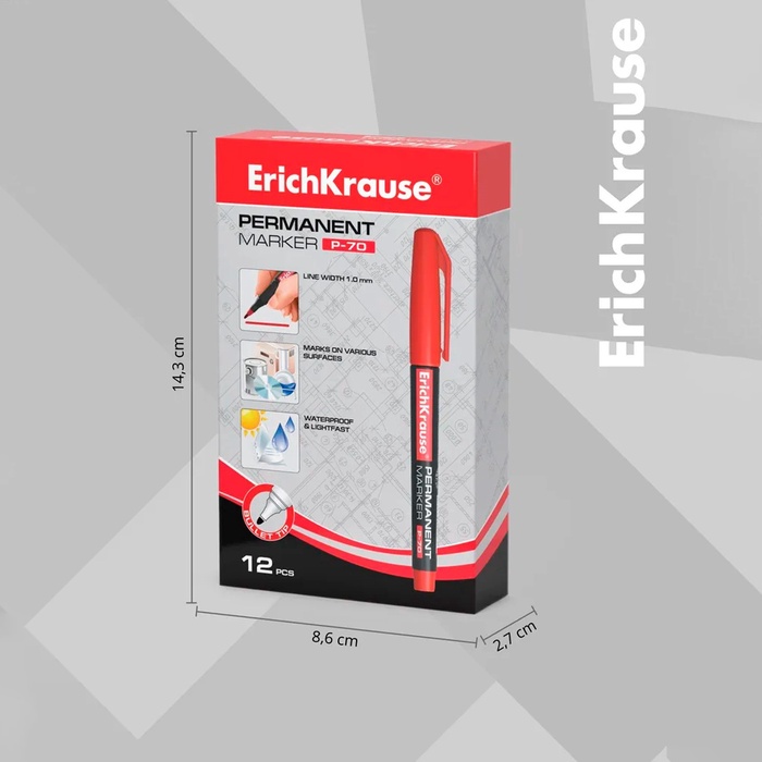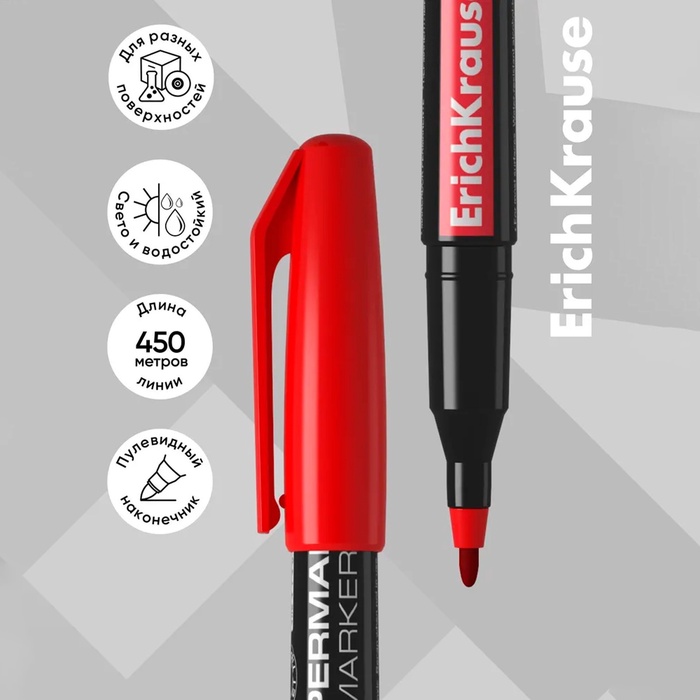 Маркер перманентный 1.0 мм ErichKrause P-70 красный, чернила на спиртовой основе светостойкие, водостойкие. Для письма на любой поверхности — Характеристики