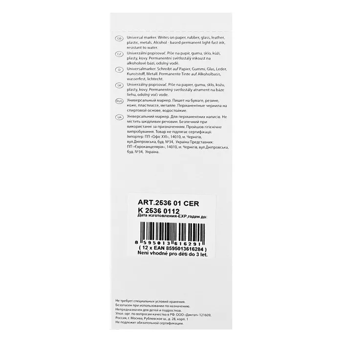 Centropen 2536 — это перманентный светостойкий маркер с эргономичной зоной обхвата. Предназначен для письма на любых поверхностях.