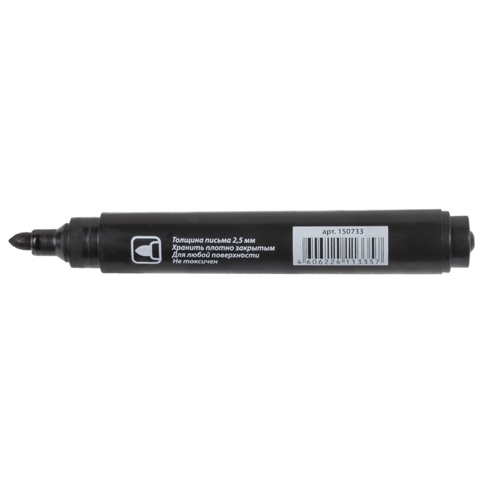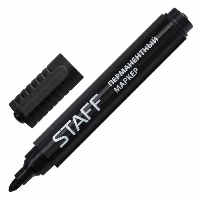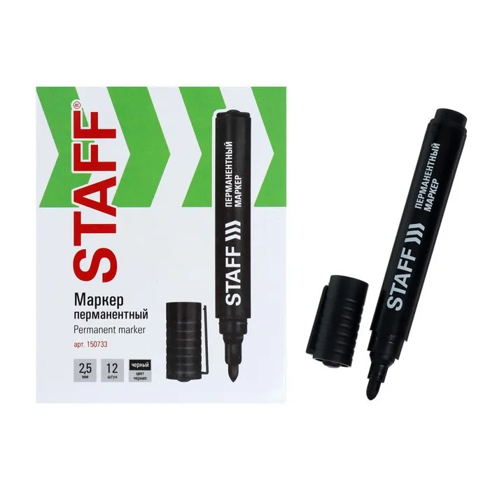 Маркер перманентный STAFF "Basic" предназначен для письма на любой поверхности: бумага, полиэтилен, дерево, стекло, металл, натуральная кожа, ткань, камень, плитка. Маркер перманентный черного цвета обладает круглой формой корпуса из пластика, диаметр которого 15 мм. Толщина линии письма - 2,5 мм. Особая нестираемая основа перманентного маркера обеспечивает такие качества, как стойкость к воздействию воды, низких и высоких температур. Благодаря спиртовой основе чернила быстро сохнут и не смазываются. Фетровый наконечник обеспечивает экономный расход чернил. Изделие не перезаправляется. Плотно закрывается колпачком, что предотвращает высыхание наконечника и чернил. Цвет корпуса и колпачка соответствует цвету чернил.