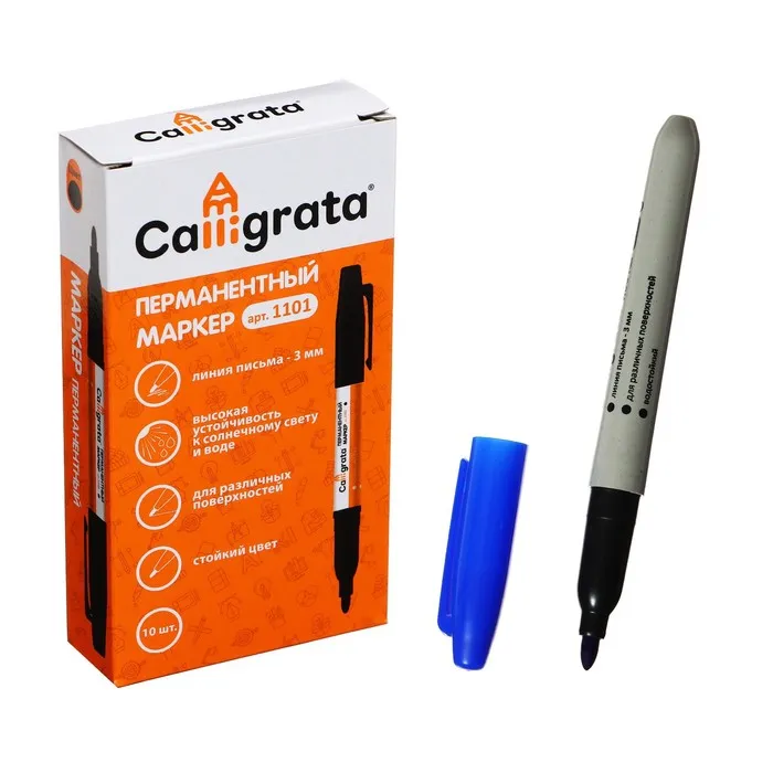 Можно маркировать, среди прочего, пластмассовые, деревянные, металлические, стеклянные или картонные предметы.Цвет колпачка соответствует цвету чернил.Фетровый, круглый, эластичный наконечник обладает повышенной износостойкостью и обеспечивает экономный расход чернил.Отличается продленной линией письма.Изделие не перезаправляется.Плотно закрывается колпачком, что предотвращает высыхание наконечника и чернил.Толщина линии письма 1 - 3 мм в зависимости от угла наклона.Спиртовая основа быстросохнущих чернил.Круглая форма корпуса из пластика.Перманентный маркер Calligrata должен быть всегда под рукой!