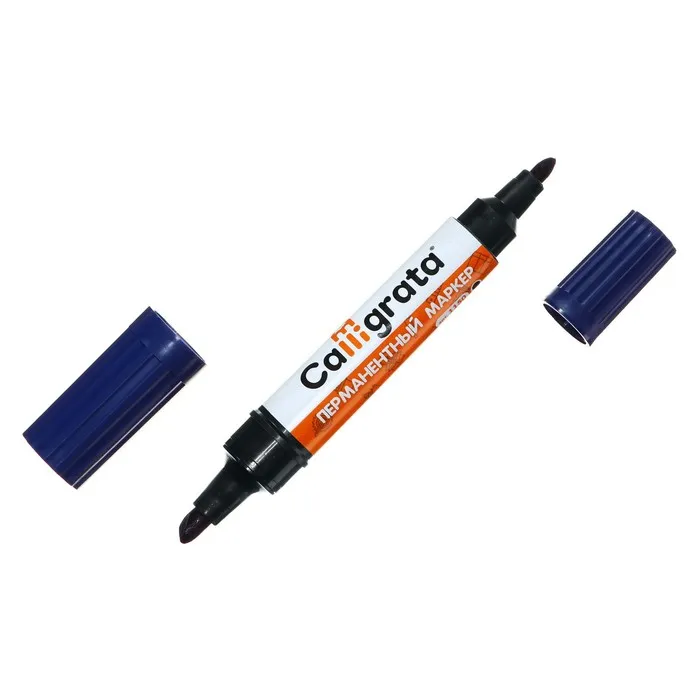 Маркер перманентный, двухсторонний, круглый, 5 мм/3 мм, синий, CALLIGRATA 1150 — высококлассный представитель таких маркеров. Стекло, дерево, металл, керамика и конечно бумага — надпись на любых поверхностях гарантировано останется яркой и стойкой даже через несколько лет.