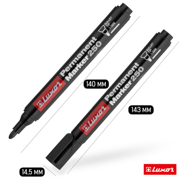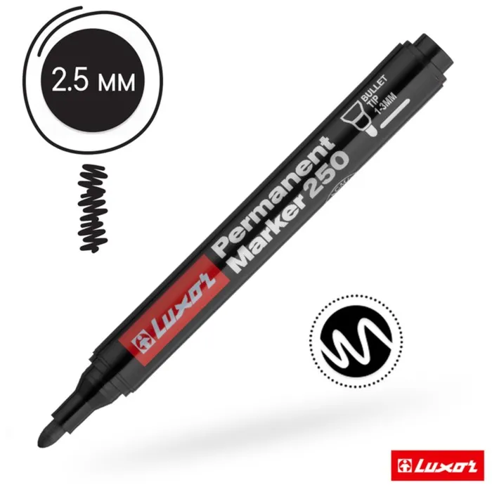 Маркер перманентный Luxor 250, 1-2 мм, пулевидный, чёрный — Характеристики