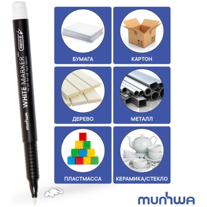 Маркер перманентный MunHwa, 1.0 мм, пулевидный, белый — Характеристики
