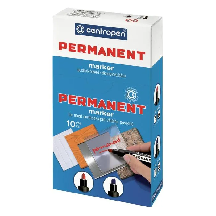 Перманентный универсальный маркер пишет на большинстве поверхностей, после засыхания устойчивый к воде, стиранию, атмосферным воздействиям.