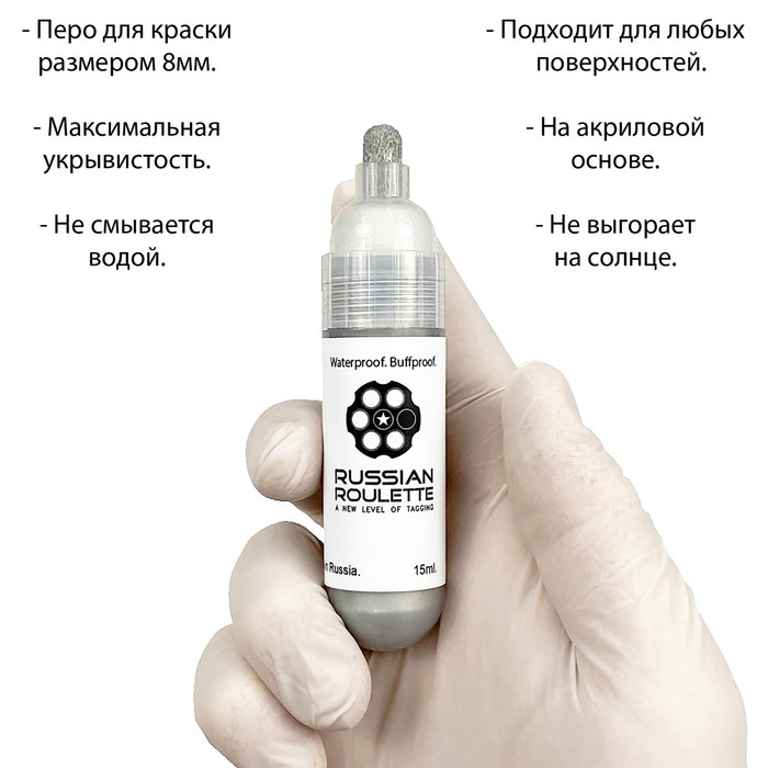 Маркер Russian Roulette 8mm 15мл "Chrome paint" — Характеристики
