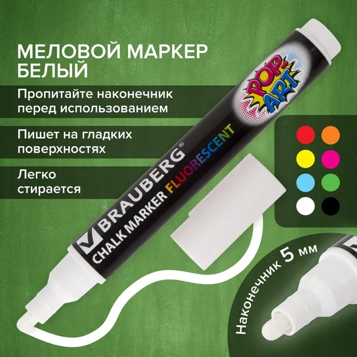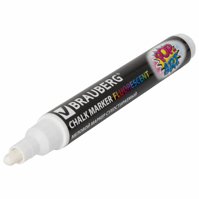 Маркер сухостираемый меловой для гладких поверхностей BRAUBERG POP-ART, 5 мм, флуоресцентный белый — Характеристики