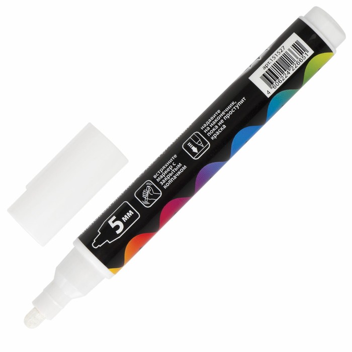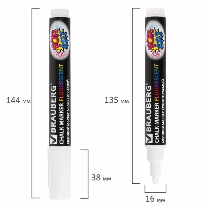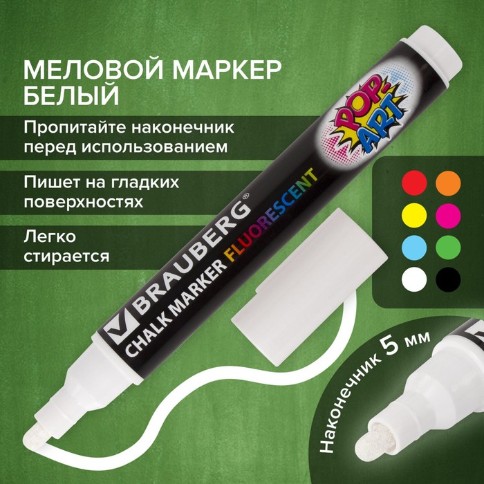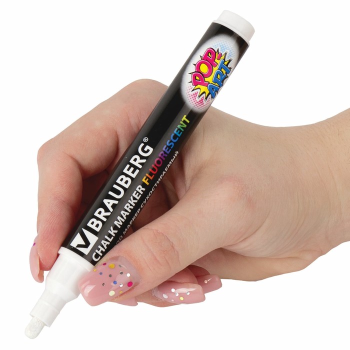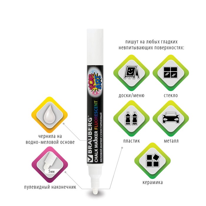 Маркер сухостираемый меловой для гладких поверхностей BRAUBERG POP-ART, 5 мм, флуоресцентный белый — Характеристики
