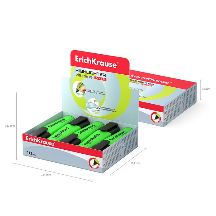 Текстмаркер предназначен для работы на всех типах бумаги, в том числе на бумаге для факсов и копировальных машин. Цвет корпуса соответствует цвету чернил. Пишущий узел скошенной формы позволяет варьировать ширину письма. Широкая часть наконечника 5.2 мм удобна для выделения текста, а тонкая 0.6 мм –для подчеркивания. Флуоресцентные чернила на водной основе быстро высыхают после нанесения и не оставляеют следов на обратной стороне бумаги за счет тонкого и равномерного нанесения. Имеет узнаваемую запатентованную форму и стал абсолютным бестселлером в ассортименте текстмаркеров ErichKrause® более чем в пятидесяти странах мира. Срок годности 5 лет.