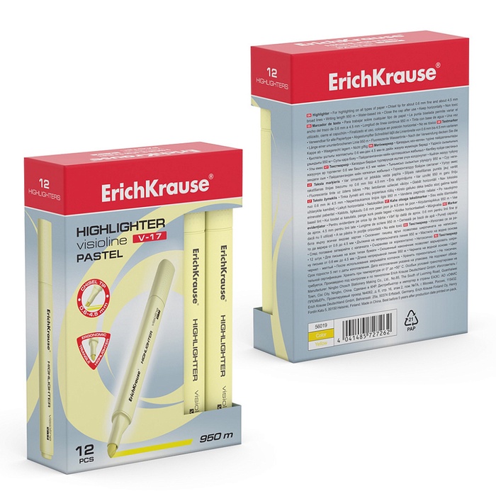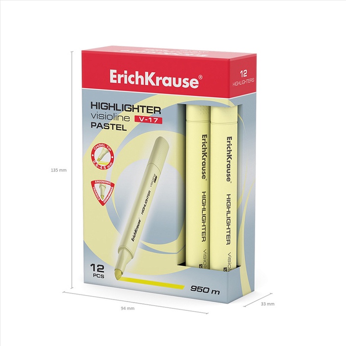 Маркер текстовыделитель ErichKrause Visioline V-17 Pastel, 0.6-4.5 мм, чернила на водной основе, жёлтый — Характеристики