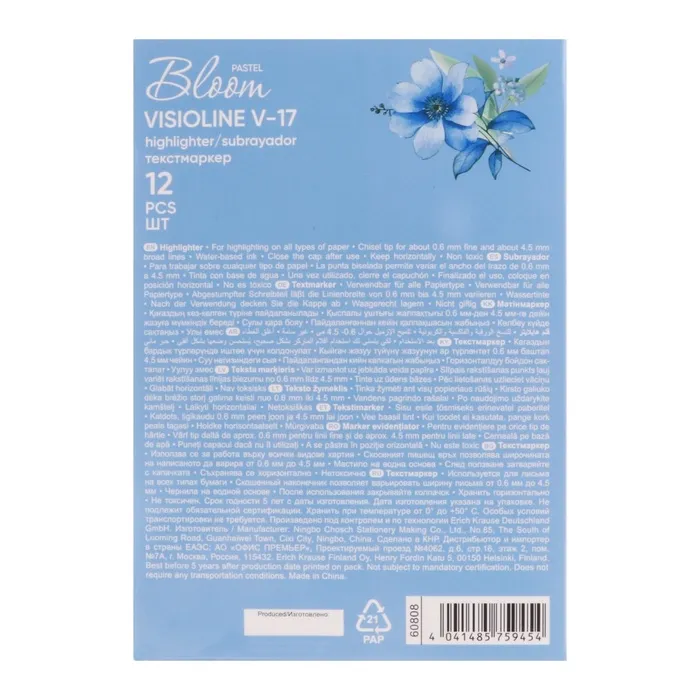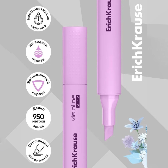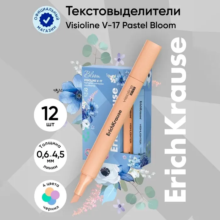 Маркер текстовыделитель ErichKrause Visioline V-17 Pastel Bloom, 4.5 мм, чернила на водной основе, МИКС — Характеристики