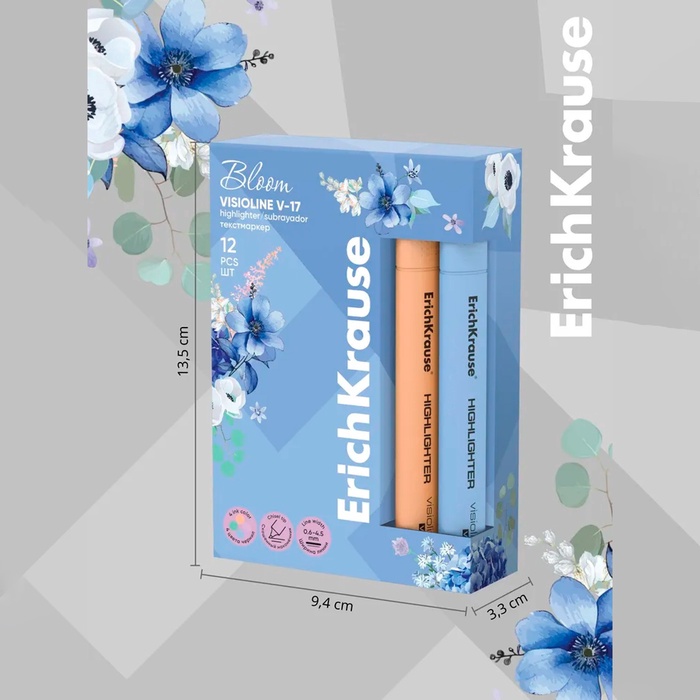 Текстмаркер ErichKrause Visioline V-17 Pastel Bloom, цвет чернил ассорти (в коробке по 12 шт.)