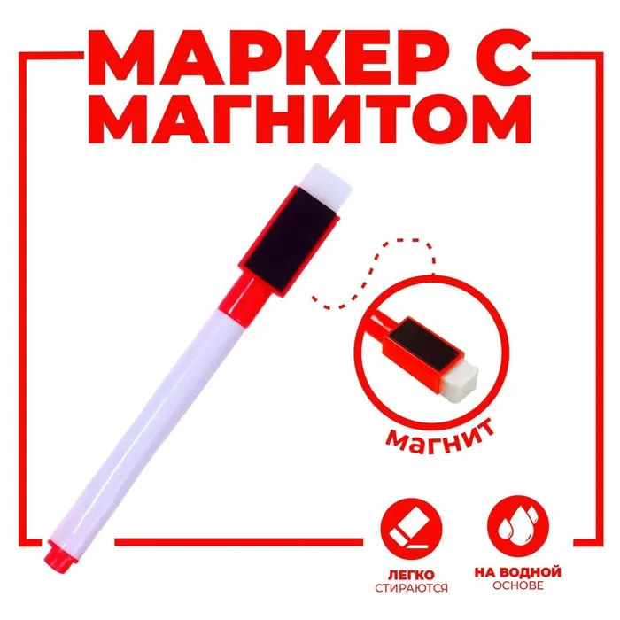 Маркер цветной на водной основе с губкой и с магнитом, 2×1.5×11 см, красный — Характеристики